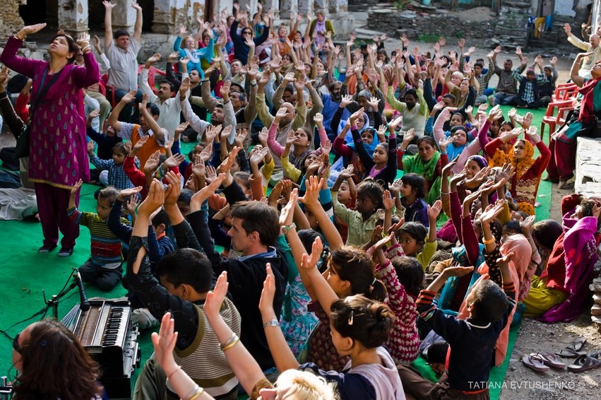 Es kamen auch viele andere Sucher. Das Einführungs-Programm wurde von schönen Musikeinlagen durch die ukrainischen und argentinischen Yogis begleitet, und die Einheimischen hörten mit Bewunderung, wie Ausländer alte indische Hymnen und heilige Texte vorsangen.