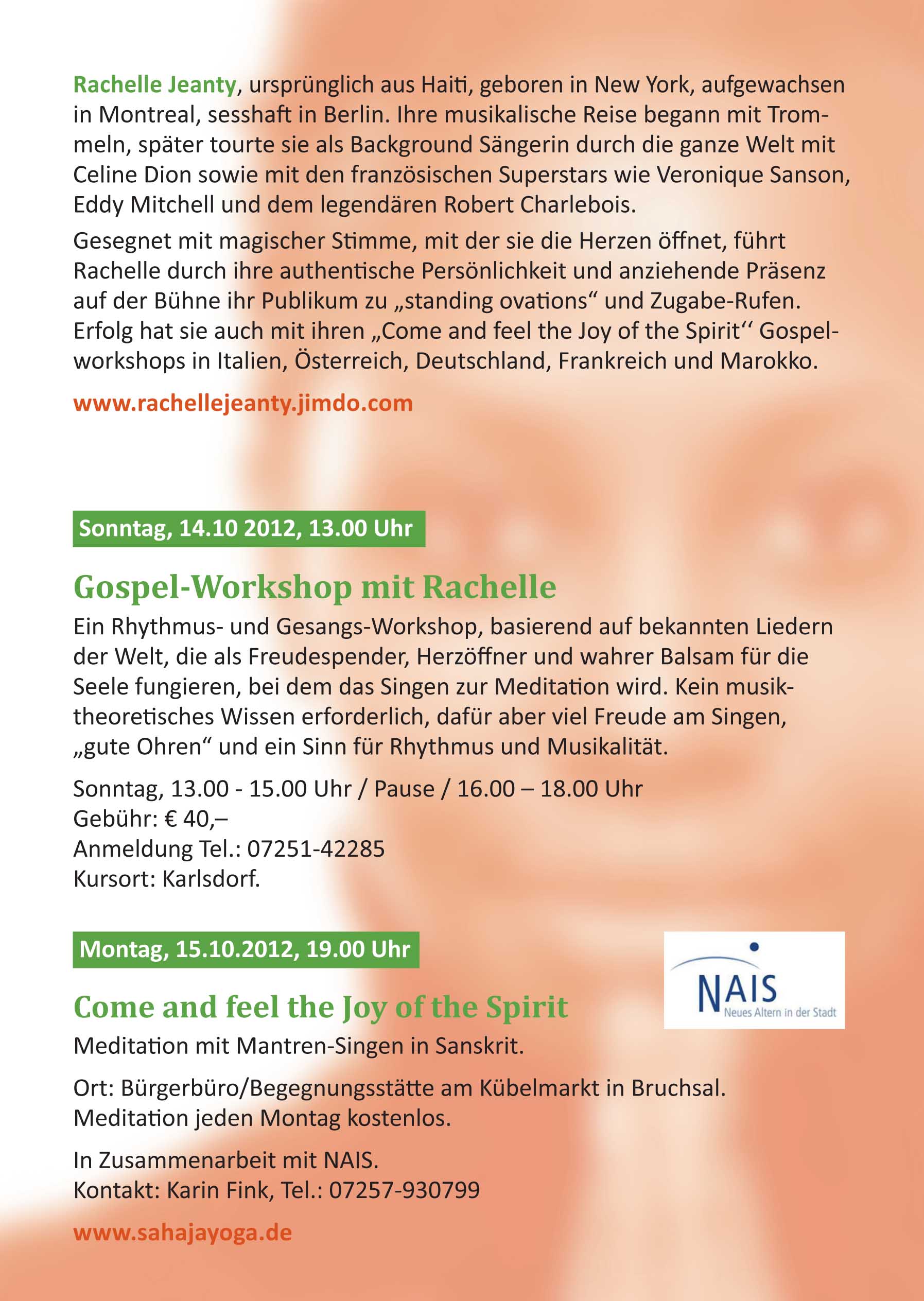Soul & Gospelkonzert mit Workshop am Sonntag, 14.Oktober 2012