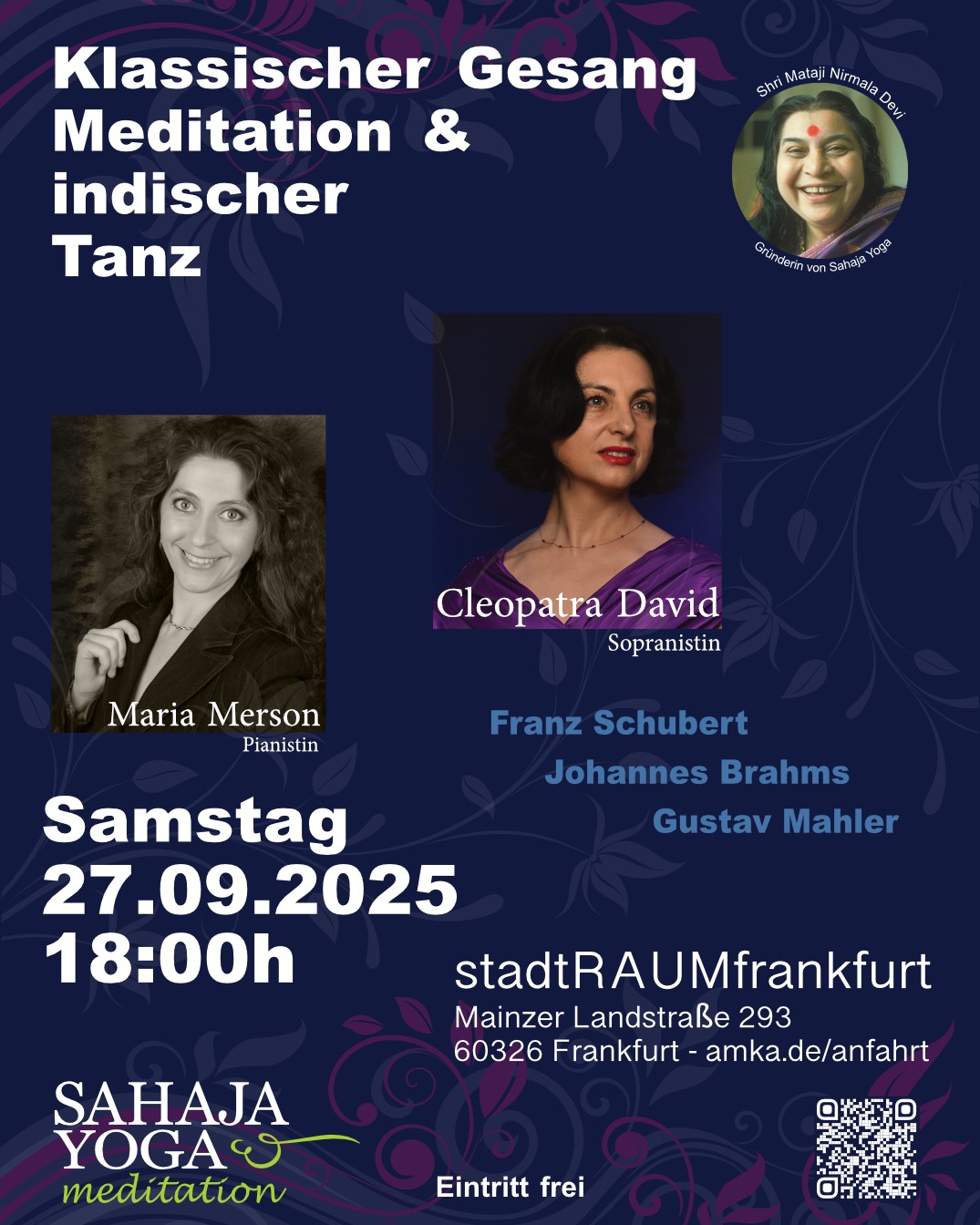 Wir laden dich zu einem ganz besonderen Konzert mit international bekannten Künstlerinnen ein. Klassische Musik dient als akustische Begleitung und hilft dir, dich zu entspannen und begleitet dich während der Meditation. Es ist eine großartige Gelegenheit, die beeindruckenden Talente von Cleopatra David und Maria Merson zu erleben.