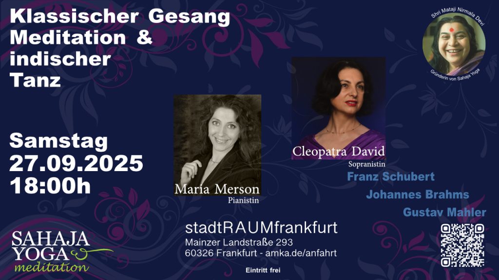 Genieße die stillen Momente der Sahaja Yoga Meditation eingebbetet in die klangvollen Harmonien des klassischen Operngesangs.